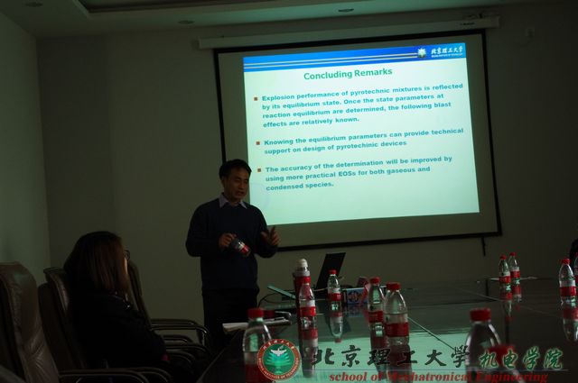 接下来,刘志跃老师轻松幽默但又不失严谨的做题为“烟火剂等含能材料爆炸特性预测方法和分析”报告。详细阐述了含能材料(烟火剂)燃烧,爆炸后混合物压力场的计算工作,以及相关实验工作。
