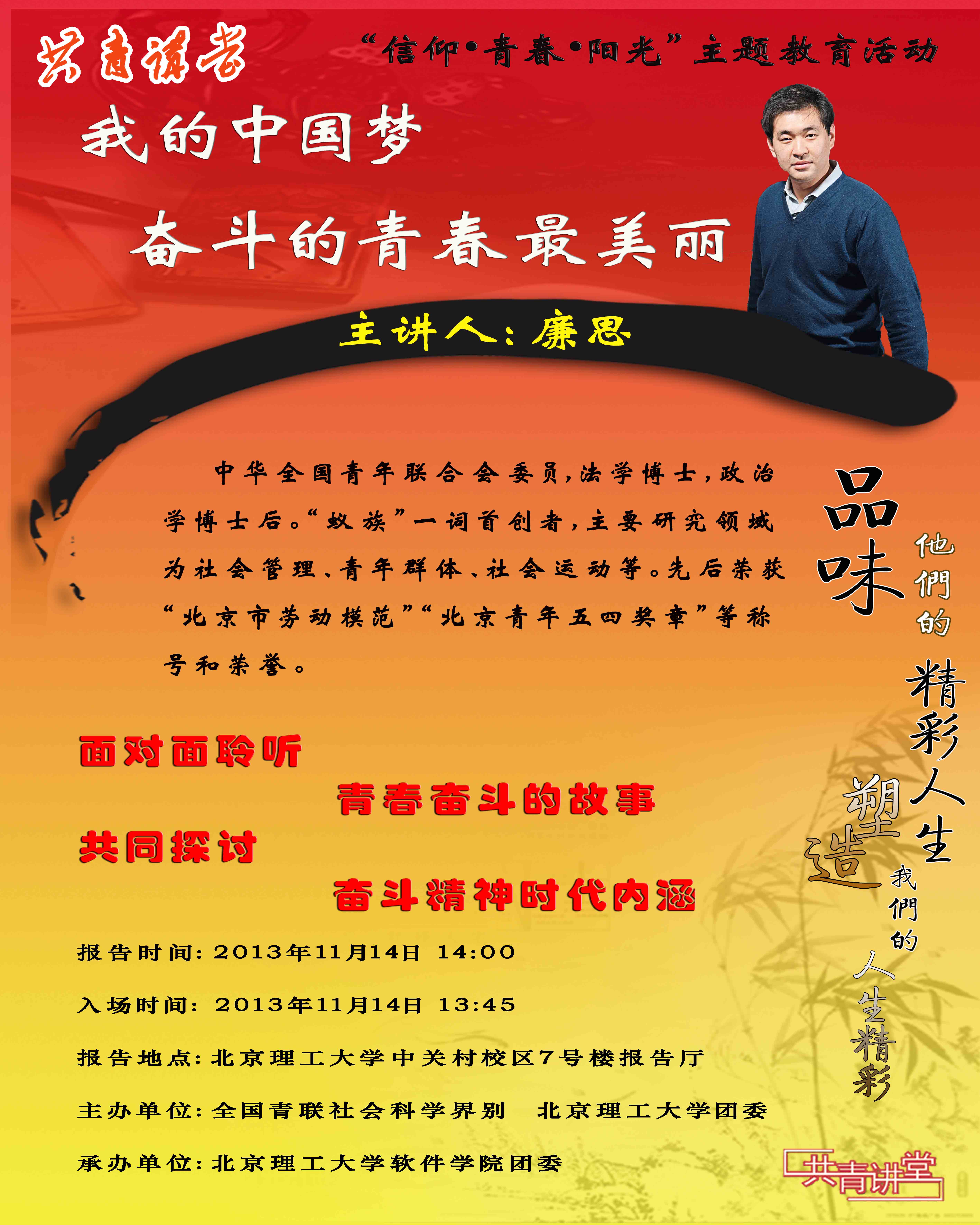 “我的中国梦——奋斗的青春最美丽”全国青联委员走进北理工与青年学子面对面活动预告