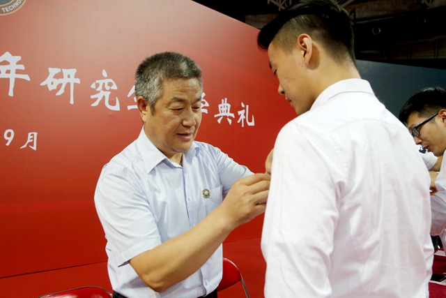 在激昂的北京理工大学校歌声中,校领导为2019级研究生新生代表佩戴校徽,标志着2019级研究生已经正式成为北京理工大学的一员,他们将秉承“延安根、军工魂”,努力成长为德智体美劳全面发展的中国特色社会主义建设者和接班人!
